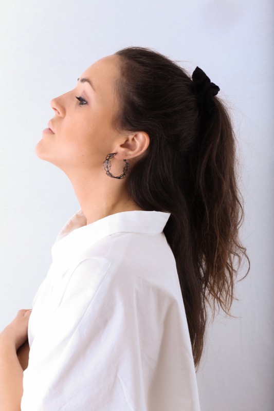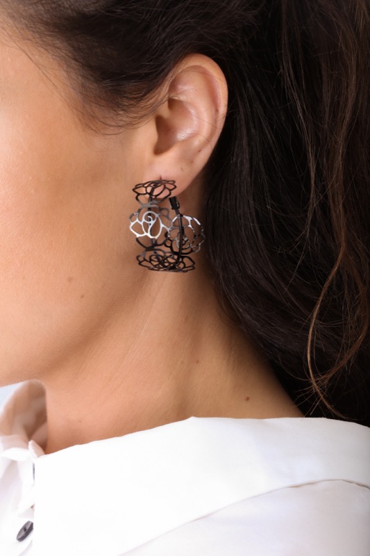 Arracades d’aro amb roses d’acer negre. Tanca Omega.