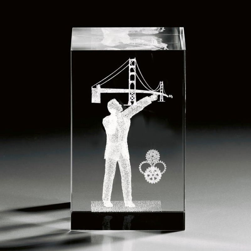 Cristal óptico macizo personalizado con imagen 3D grabada con láser en el interior. Permite personalizarlo con un texto.