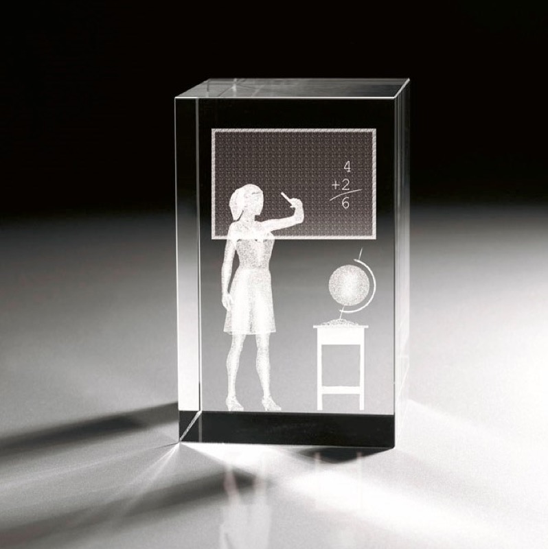 Cristal óptico macizo personalizado con imagen 3D grabada con láser en el interior. Permite personalizarlo con un texto.