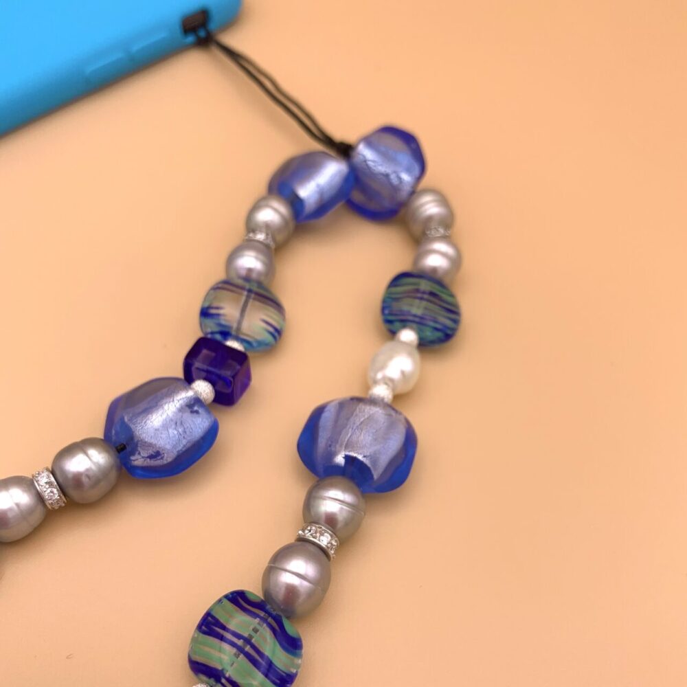 Phone string. Accesorio para móvil hecho a mano de 25 cm de longitud.